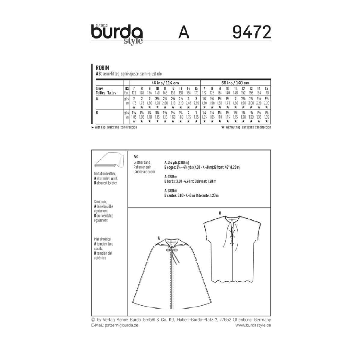 Amazon Com Burda Pattern 9472 Robin Cape Layer Size 122 170 Arts Crafts Sewing